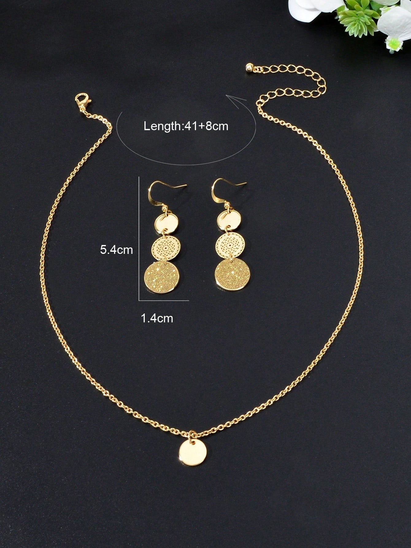 Gold Small Disc Pendant Necklace and Earring Set - Elegant Jewelry Ensemble